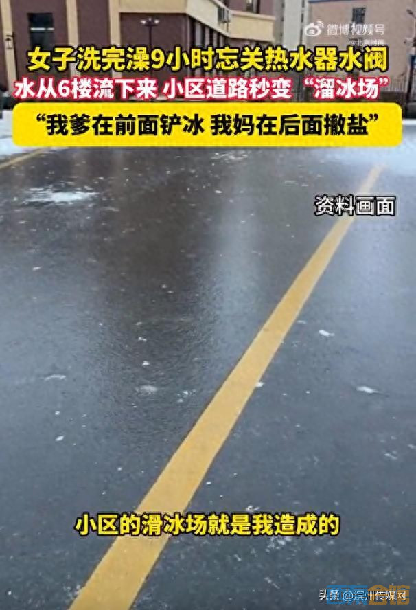 女子洗澡忘关水阀致小区变“溜冰场”,当事人致歉:我爸前面铲冰,我妈后面撒盐