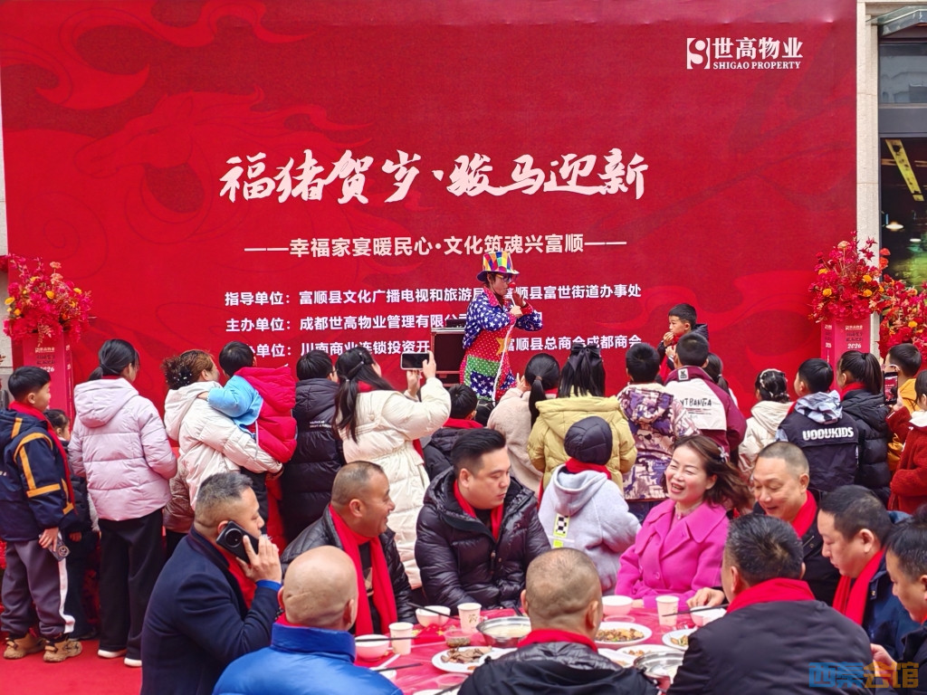 为传递新春暖意、弘扬本土文化,近日,“福猪贺岁、骏马迎新——幸福永宴暖民心、文化筑魂兴富顺”千人宴活动在富顺县富世街道海棠社区公园世家小区圆满举办。本次活动由富顺县文化广播电视和旅游局、富顺县人民政府富世街道办事处联合指导,成都世高物业管理有限公司主办,川南商业连锁投资开发联合会、富顺县总商会成都商会协办,以烟火盛宴串联邻里情谊,以文化赋能助力县域发展,赢得了辖区居民与社会各界的广泛赞誉。