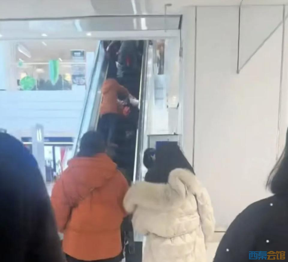 内蒙古一商场发生意外:女子推着轮椅上扶梯,轮椅上坐着老人,老人抱着孩子,轮椅...