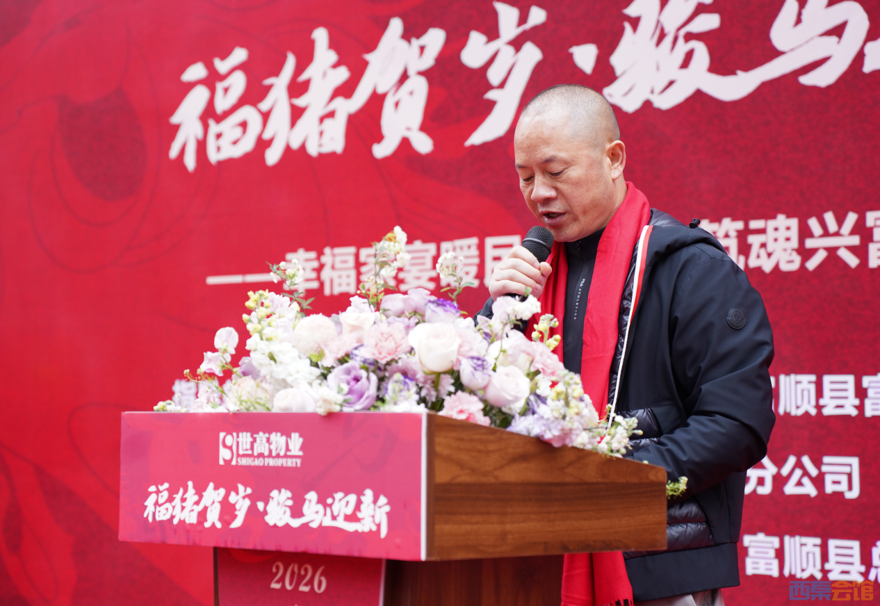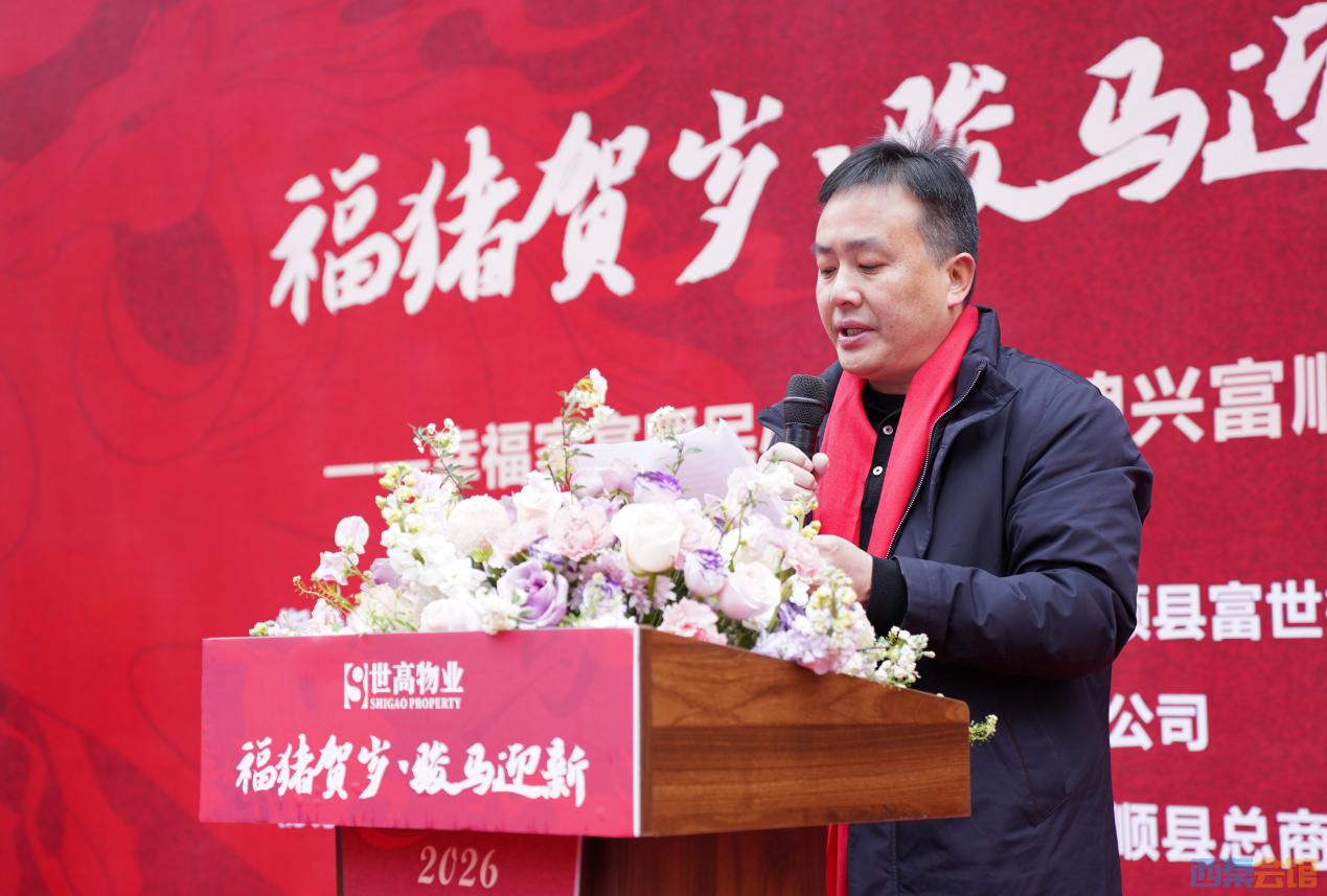 上午9时许,活动在公园世家、北湖一号、公园锦华等多支业主舞蹈队的暖场表演中拉开序幕。随后,富顺县文化广电旅游局局长高启强、富顺县总商会成都会长王万安依次登台致辞,向业主们送上新春祝福,并对世高物业扎根社区、服务民生的努力给予充分肯定。