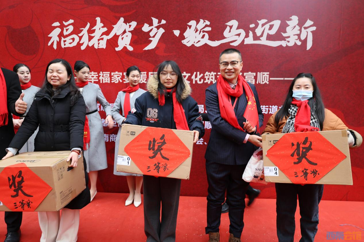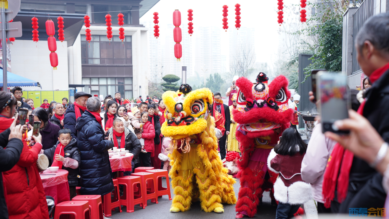 席间,舞狮、川剧变脸、腰鼓舞、歌曲演唱等精彩节目轮番上演,现场气氛热烈。穿插其中的多轮抽奖环节更是将气氛推向高潮,洗衣机、冰箱、电视机等实用礼品及本地企业赞助的香辣酱、猪肉等特殊奖,让业主在享受团圆宴的同时惊喜连连。
