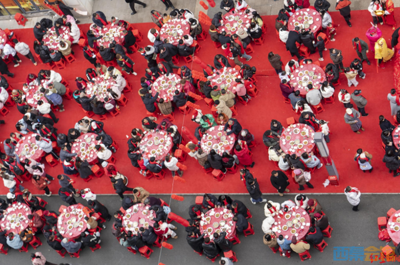 1月25日,200余桌坝坝宴在四川自贡富顺县的富顺公园世家小区热闹开席,2000余名业主汇聚于此,在欢声笑语中共同迎接即将到来的马年春节。