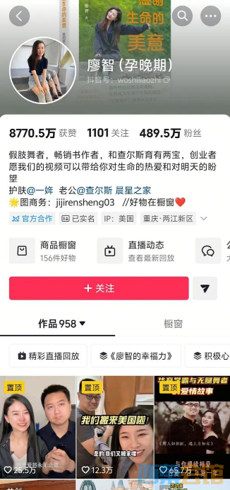 近日,假肢舞者廖智发视频称,其第四胎女儿出生,也是她截肢后的第三胎宝宝。