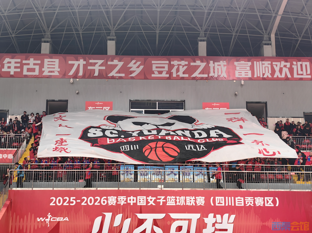 “四川雄起!远达必胜!”在富顺文体中心,3024个座位座无虚席,红色助威服汇成一片炽热的海洋。比赛场馆内,“欢迎陕西”“欢迎新疆”“欢迎武汉”……横幅醒目悬挂,富顺人以淳朴热忱迎接每一支远道而来的客队。场馆内还精心设置了各式“彩蛋”互动环节,让赛场氛围更添温情与惊喜。