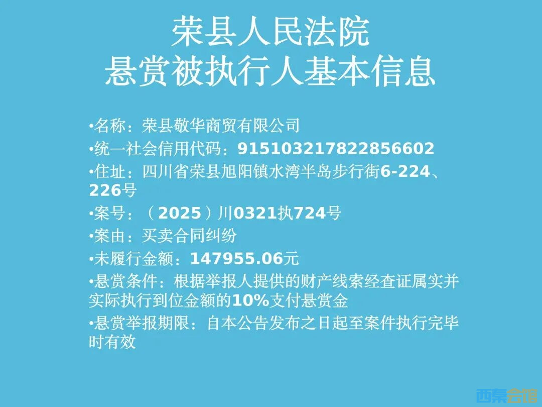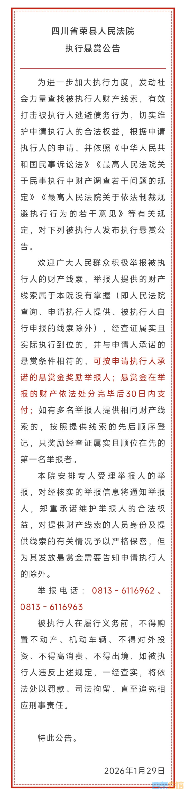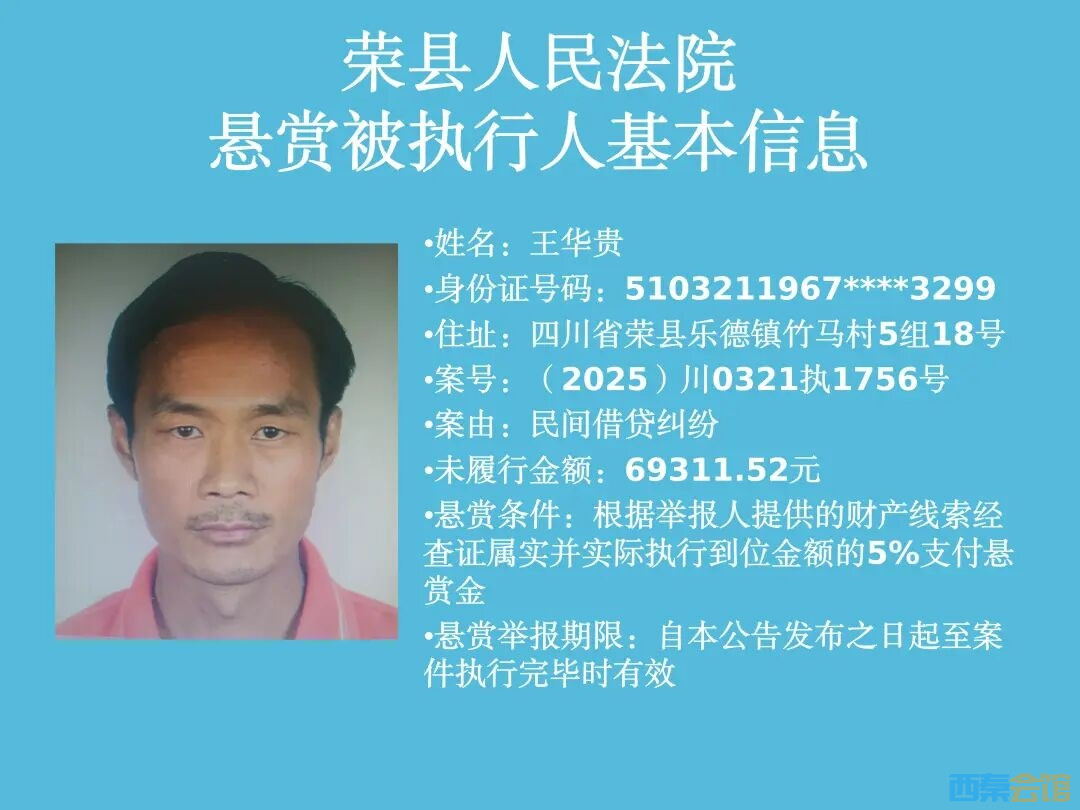 悬赏!荣县人民法院执行悬赏公告