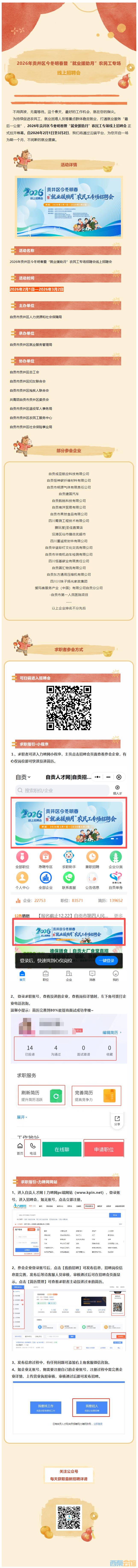 贡井区2026年“就业援助月”农民工专场招聘会,邀您共赴新春..