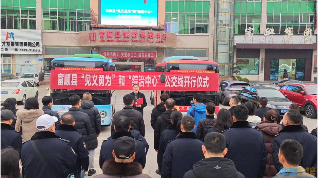 不仅如此,近日见义勇为公交专线的开通,更是将这份正气之风,传递到了城市的每一个角落,让见义勇为精神真正融入群众的日常生活。1月30日,富顺县“见义勇为”“综治中心”两条特色公交线路开行仪式举行,标志着这两条承载着正气与温暖的公交线路,正式常态化运营。这两条专线不仅在车身印制醒目的主题标语,更在车厢内打造沉浸式宣传氛围,将见义勇为先进事迹、相关法律法规等内容融入其中,让乘客在出行途中,直观感受见义勇为的浩然正气,深入了解基层综治服务内涵,真正实现“一趟出行、一次宣传”的传播效果。
