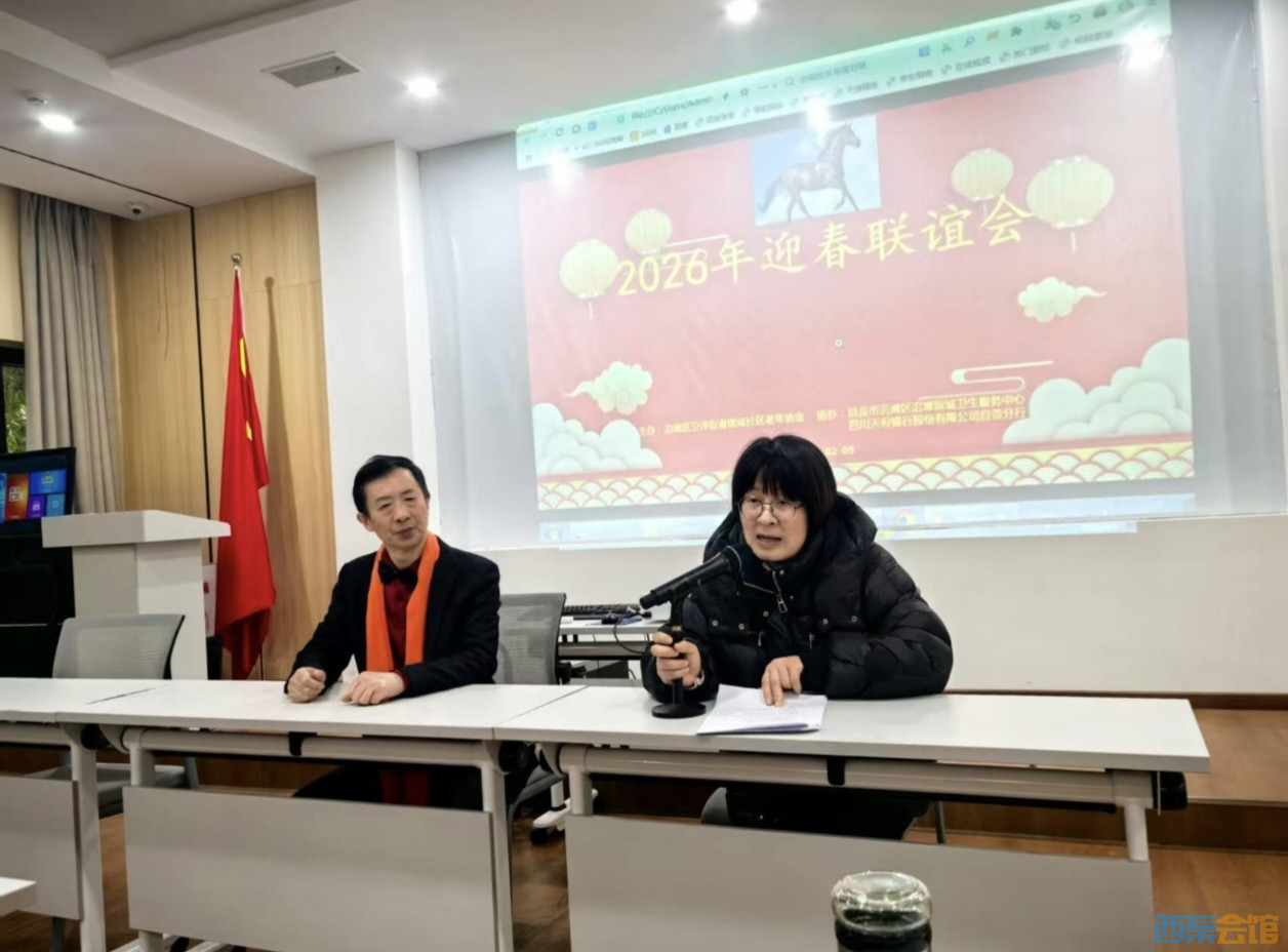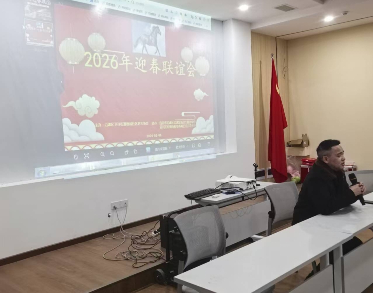 二月九日锦城社区老年协会在创兴城小区的社区会议室隆重举行,主办单位沿滩新城卫生服务中心,四川天府银行自贡分行,社区老年协会承办这场热闹的联谊活动,活动由芬芳主持,石姐指挥大家高唱“没有共产党就没有新中国”,社区曾书记到场祝贺并发表热情洋溢的讲话,老年协会副会长华哥讲话,总结了2025年的工作,感谢各级领导,爱心企业和志愿者的大力支持,各个会员的积极参与,这就是各个老年朋友丰富多彩的退休生活。