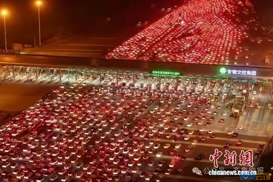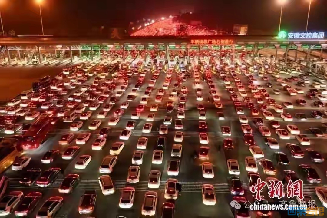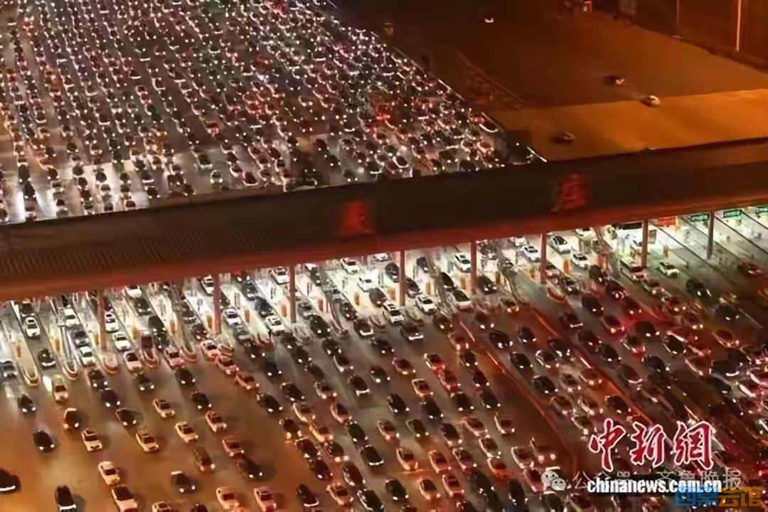 中国最大高速收费站迎返程高峰!36个车道被挤满!车灯连成“星河”!