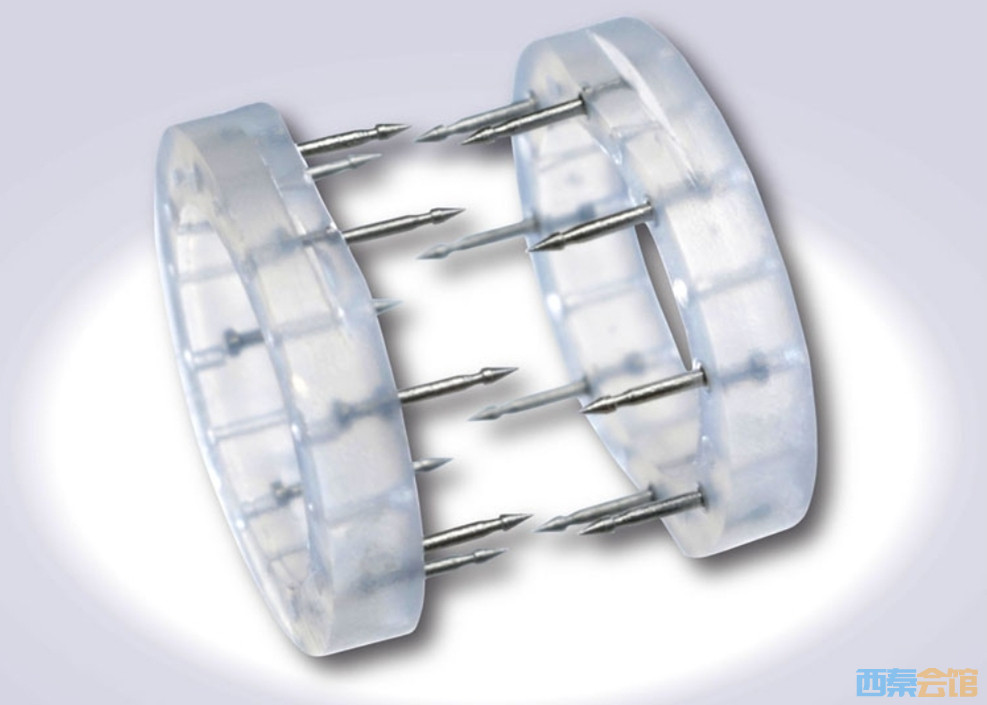 公开资料显示,该微血管吻合装置是一款由国内医疗公司代理的进口医疗器械。产品由两个超高分子量聚乙烯圆形环组成,上面带有不锈钢针。吻合血管时,将断开的血管勾在带有不锈钢针的圆环上,使用钳夹将圆环闭合,可缩短手术时间,利于术后恢复。
