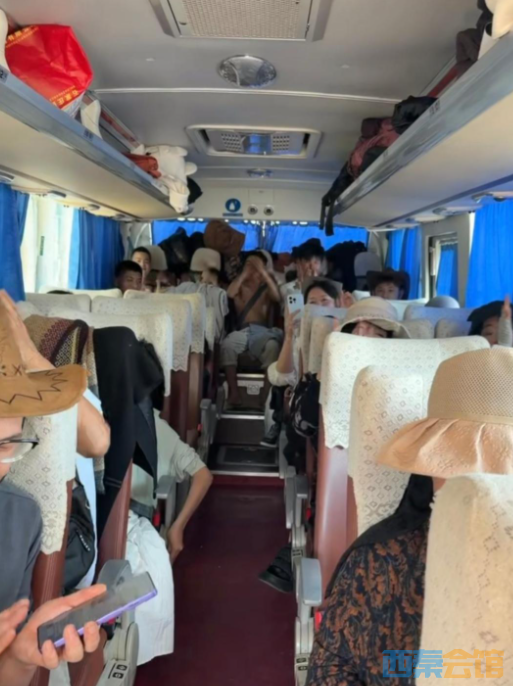 二伯的三儿子和他的媳妇、一个堂姐三人负责队伍的秩序管理,每次上车,到某地游玩、吃饭集结,都要清点人到齐了没。