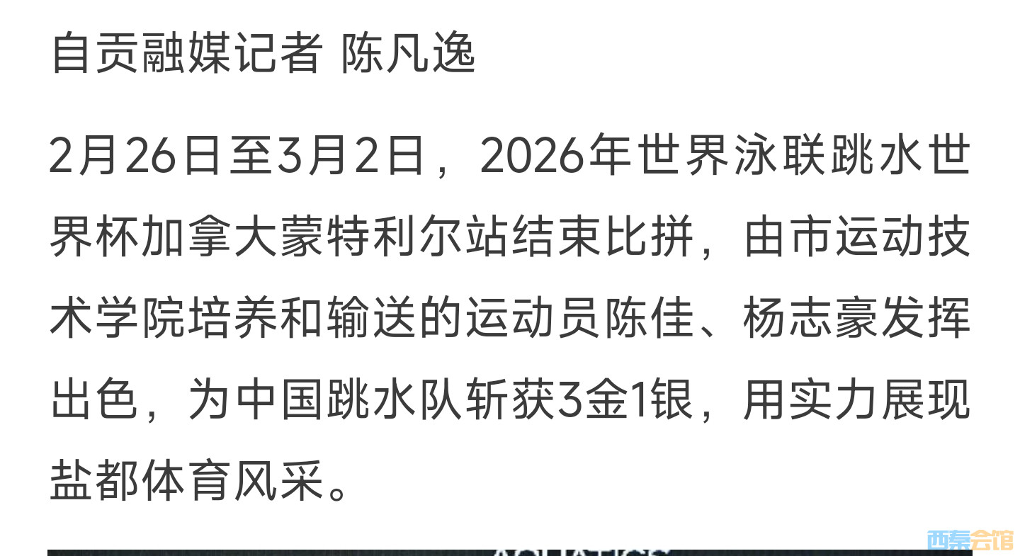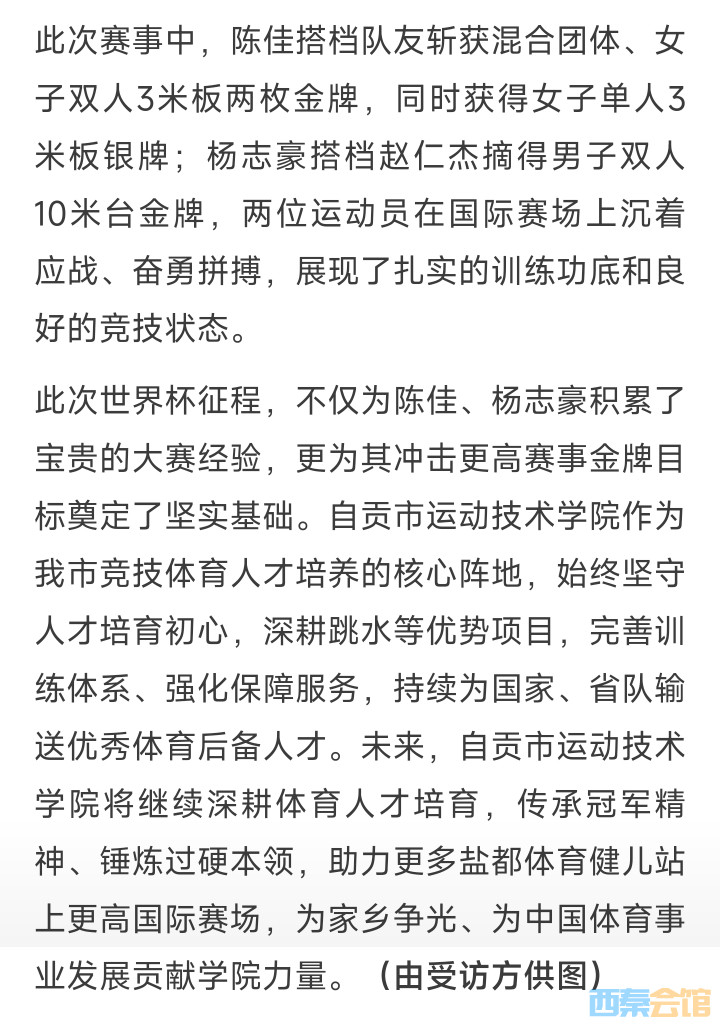 自贡跳水双星 世界杯赛场为国斩获3金1银