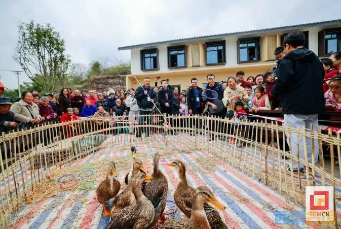 紧邻的“乐享生活,花海套鸭”场地上,游客手持套圈,瞄准摇摇摆摆的鸭子奋力一掷。一位婆婆手法娴熟,接连套中两只,赢得掌声雷动;最令人捧腹的当属“拾忆农味,农田抓鸭”——三组人马以“两人三足”的形式冲进场地,鸭子扑棱着翅膀四处逃窜,人在后面跌跌撞撞紧追不舍,引得现场笑声不断。
