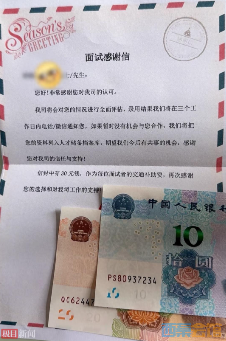 女子面试后收到感谢信和30元交通补助,公司:无论是否通过面试都能收到,老板很尊...