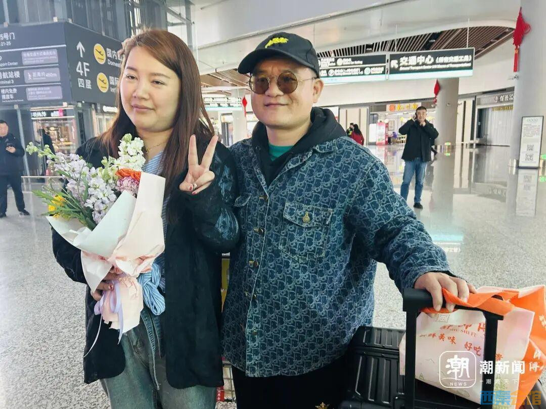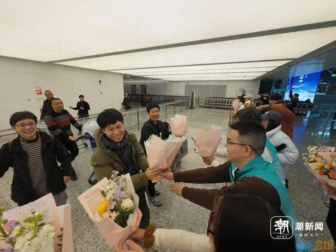 上午11时许,旅行社工作人员早早在接机处拉起“欢迎回家”的横幅,还为即将到达的旅客准备了鲜花和糕点。