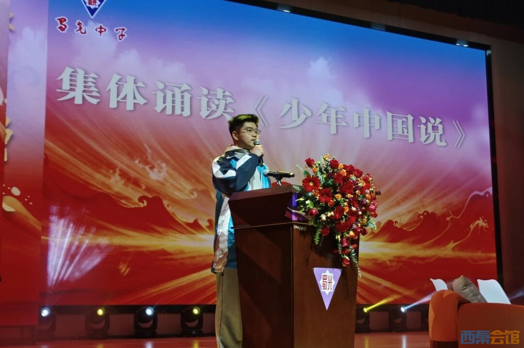 “少年强则国强,少年独立则国独立……”全体同学集体朗读《少年中国说》,铿锵有力的诵读声回荡在学术交流中心,彰显出蜀光学子朝气蓬勃、奋发向上的精神风貌,将家国情怀与青年担当融入青春誓言。