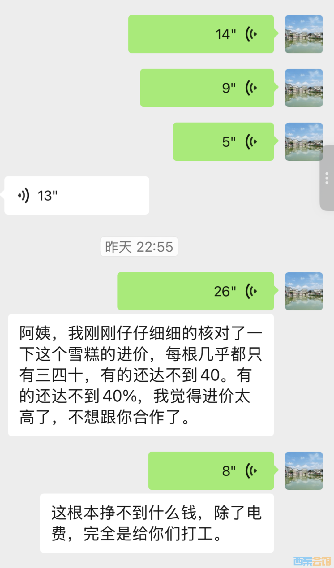 李悦和供应商沟通商品进价问题。微信截屏图