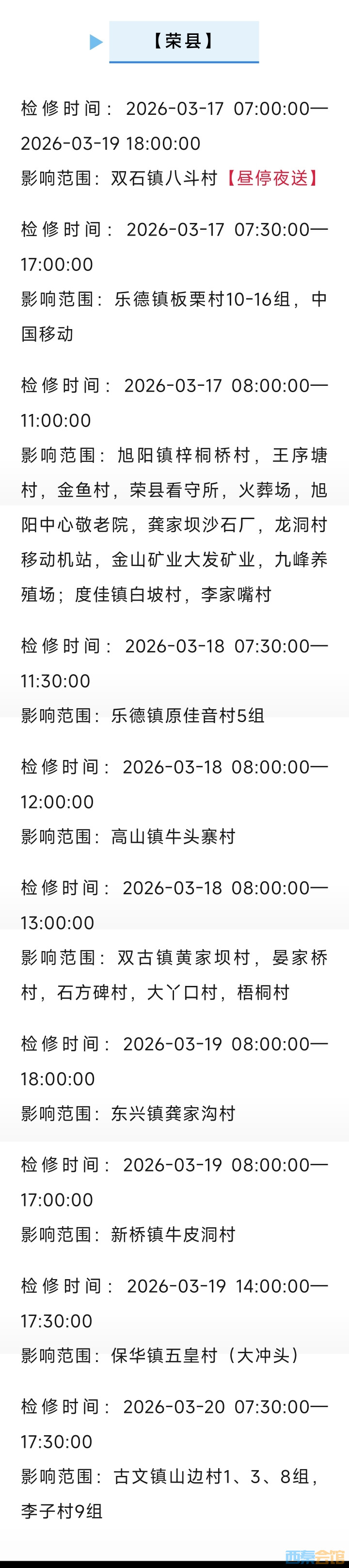 荣县电网最新检修公告