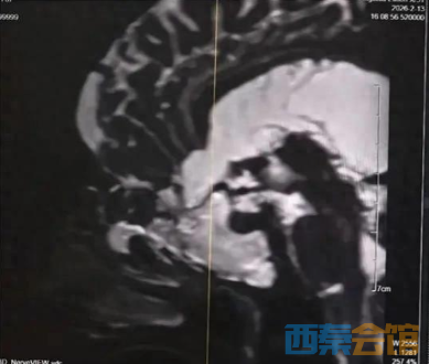 4年前,刘女士开始出现鼻腔流血、反复清水样流液,并伴有嗅觉减退。期间,她曾辗转多家医院及诊所就诊,医护人员多以“炎症”为病症进行对症治疗,但症状始终未得到根本改善。此后,刘女士多次出现发热伴鼻腔流液的情况,却一直未能明确病因,病情反复迁延。2026年2月11日,刘女士病情突然恶化,突发高热,体温超过39℃,并出现神志模糊的症状。当地医院紧急诊断后,确诊其为“脑脊液鼻漏合并颅内感染”,并下达了病危通知。危急时刻,家属紧急将刘女士转送至湘雅三医院功能神经外科求治,寻求进一步救治。 刘女士入院后,湘雅三医院功能神经外科杨靓副主任医师团队第一时间为其完善影像及实验室检查。经系统评估与综合分析,专家团队明确诊断刘女士所患疾病为——与脑室相通的高流量脑脊液漏,且其颅内感染情况较为严重。