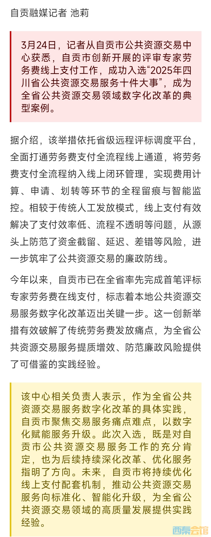 入选全省年度“十件大事” 聚焦自贡市公共资源交易服务创新成果